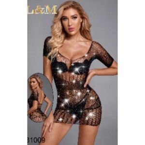 Body com Strass e Brilho, Arrastão no Tule Transparente